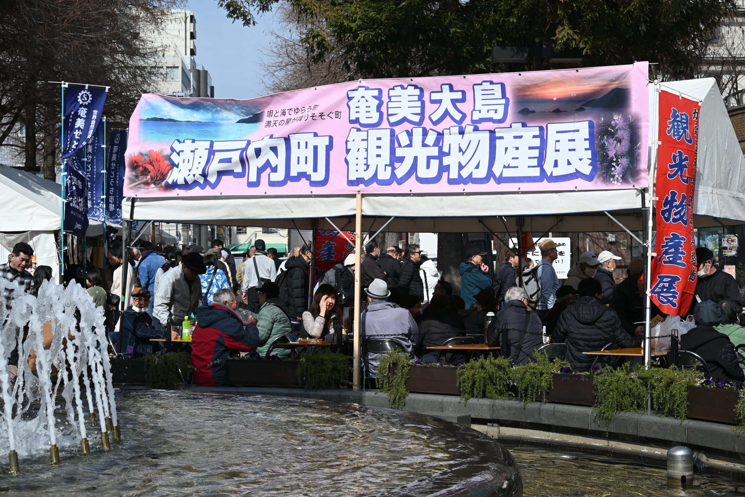 奄美大島 瀬戸内町観光物産展in尼崎(主催:瀬戸内町 共催:関西瀬戸内会)が、2月14日(土)15日(日)阪神尼崎駅中央公園噴水広場にて開催された。