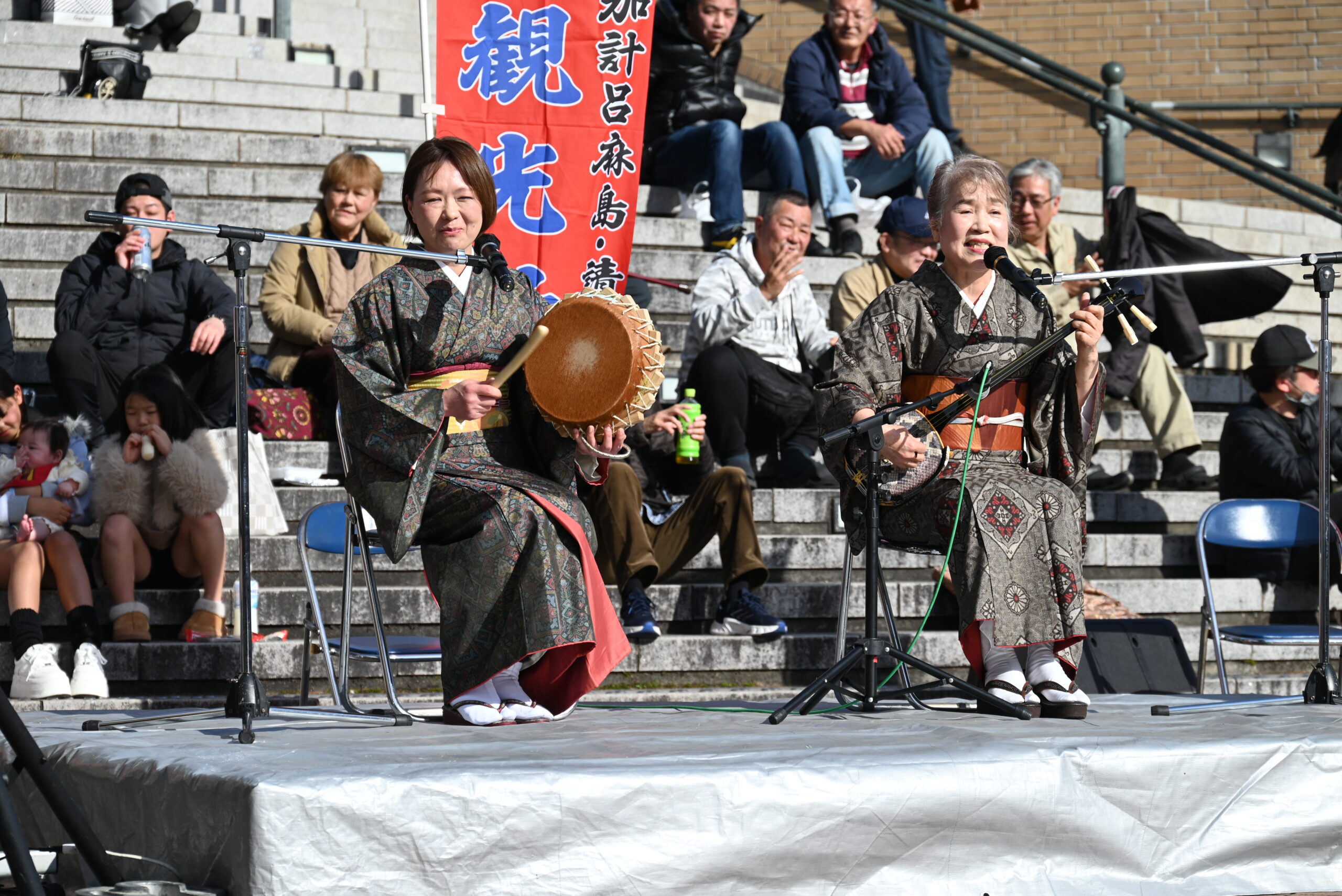 2日間、天気の崩れもなく、特設ステージでは、瀬戸内町出身者やゆかりの人たちの歌や躍りが賑やかに披露された。